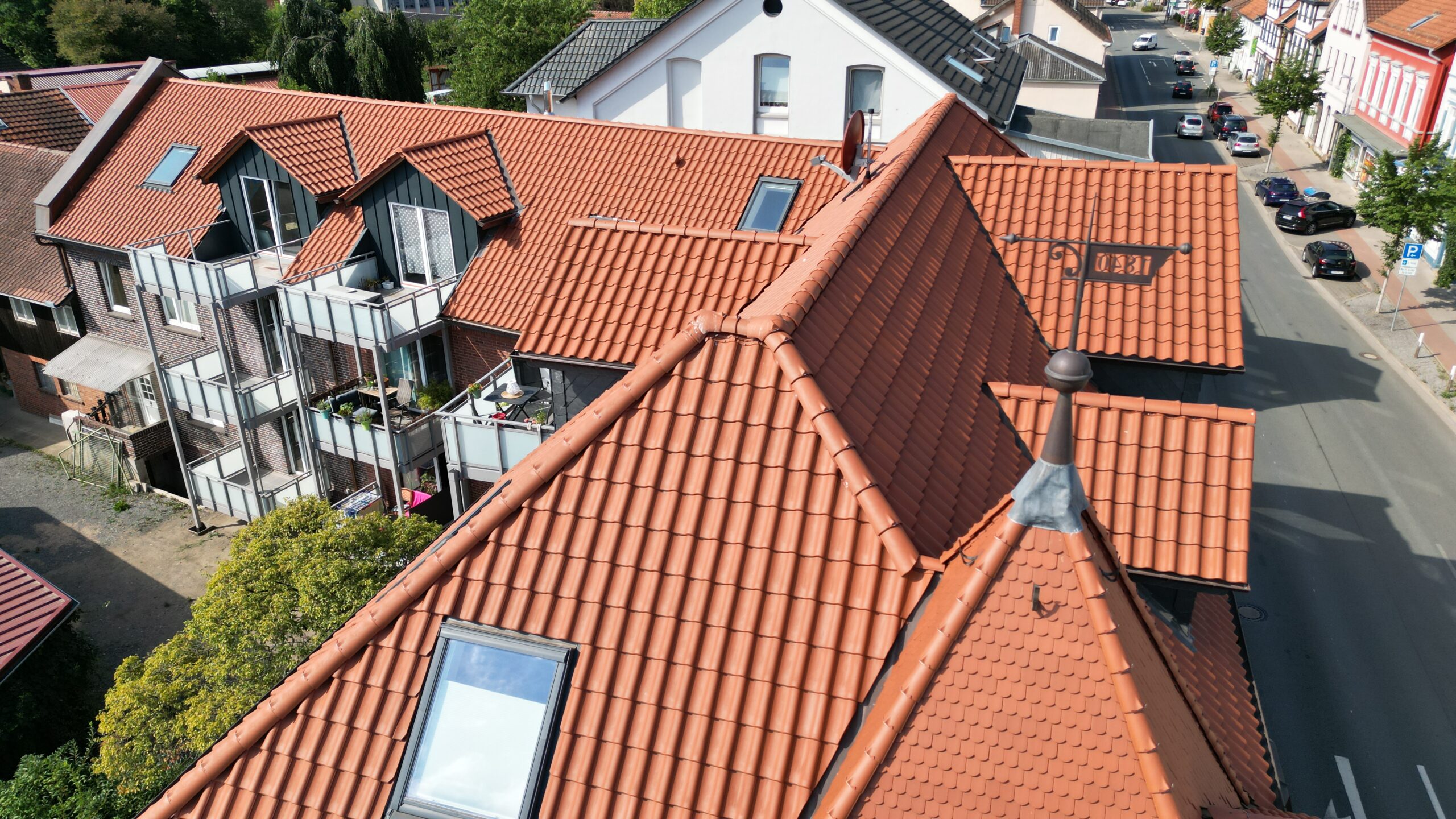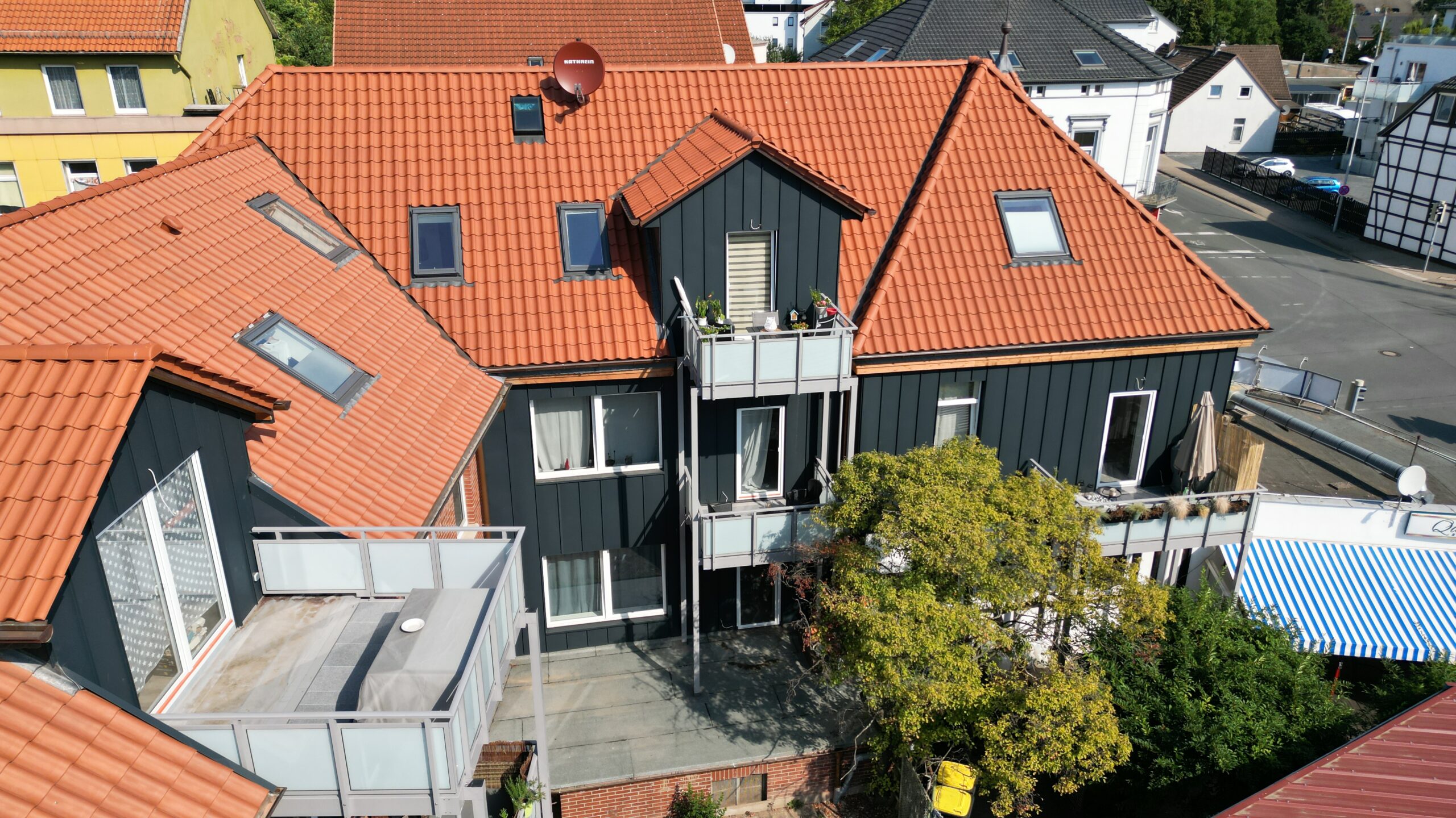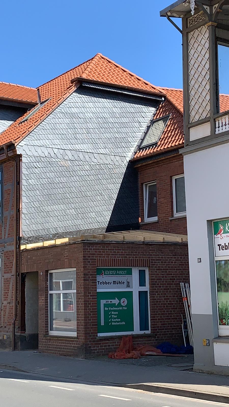 Großprojekt in Bückeburg mit Fassadenerneuerung, Dachumdeckung, verschiedener Schieferarbeiten, Dachfenstererneuerung, Kupferdach