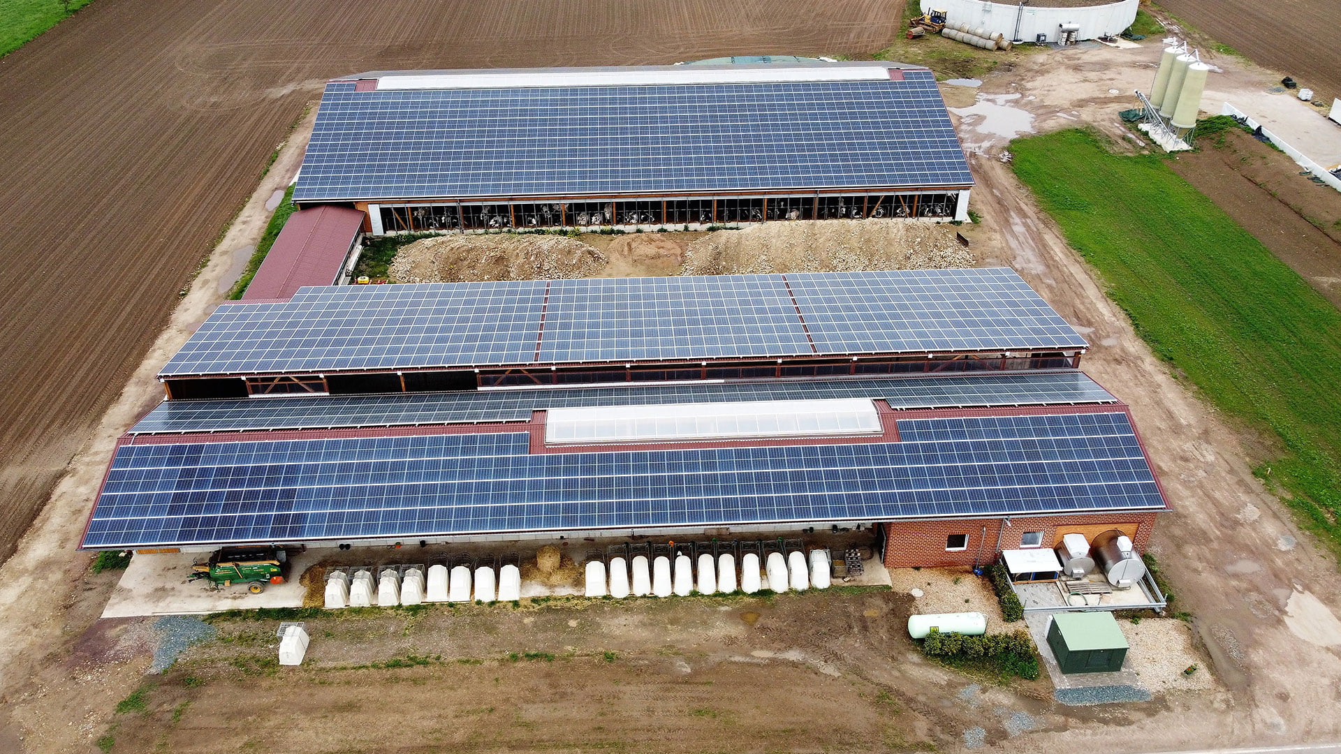 Beim Bauernhof in Bückeburg wurde auf den neugebauten Kuhstall und dem Melkzentrum eine Photovoltaik-Anlage errichtet. 530 Module mit der Einzelleistung von 325Wp (172,25kWp) und 1648 Module mit der Einzelleistung von 335Wp (552,080kWp) wurden montiert und 12 SMA Core 1 STP 50-40 Wechselrichter installiert. Die Gesamtleistung der PV-Anlage beträgt 724,33kWp.