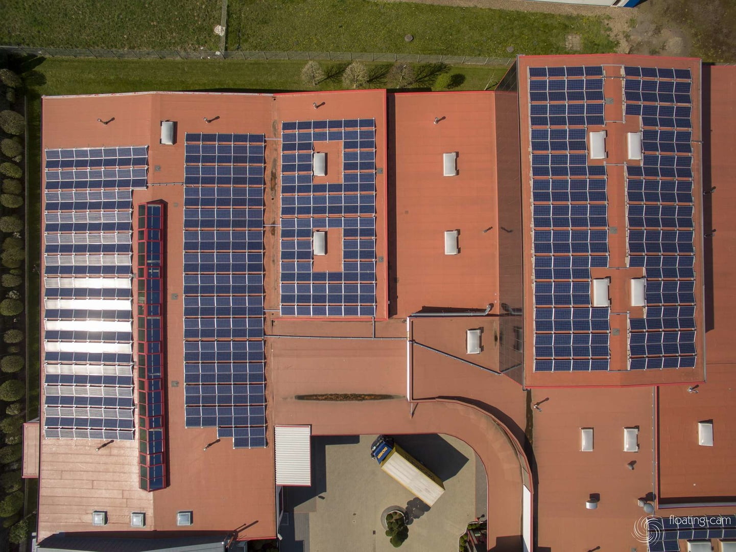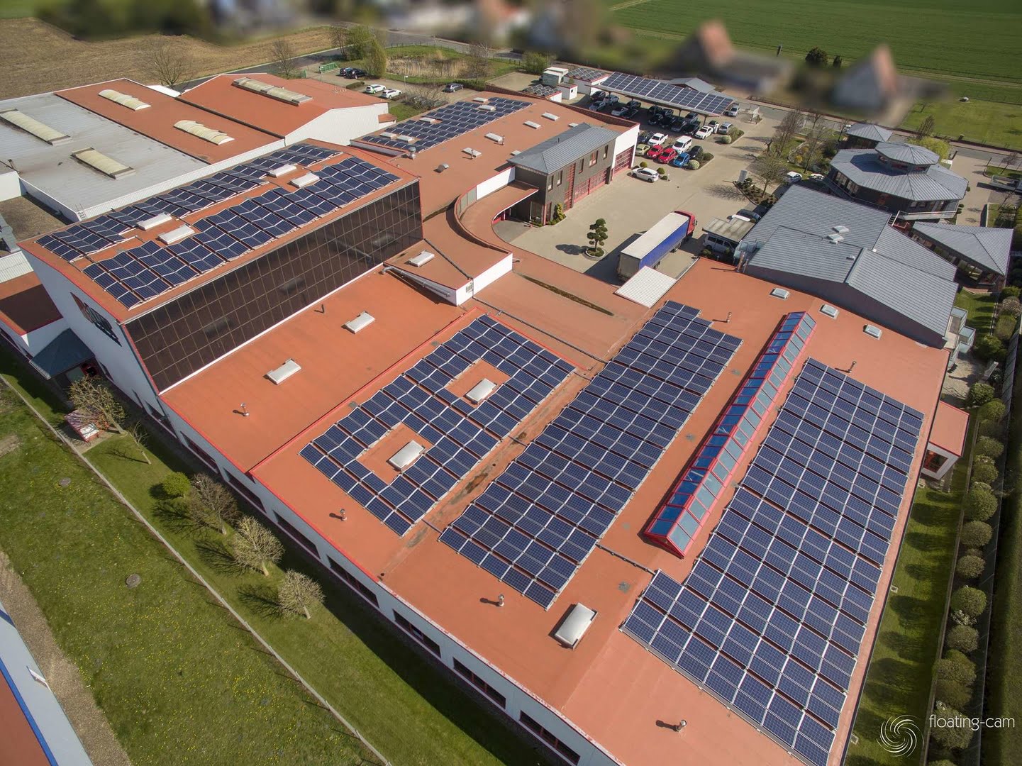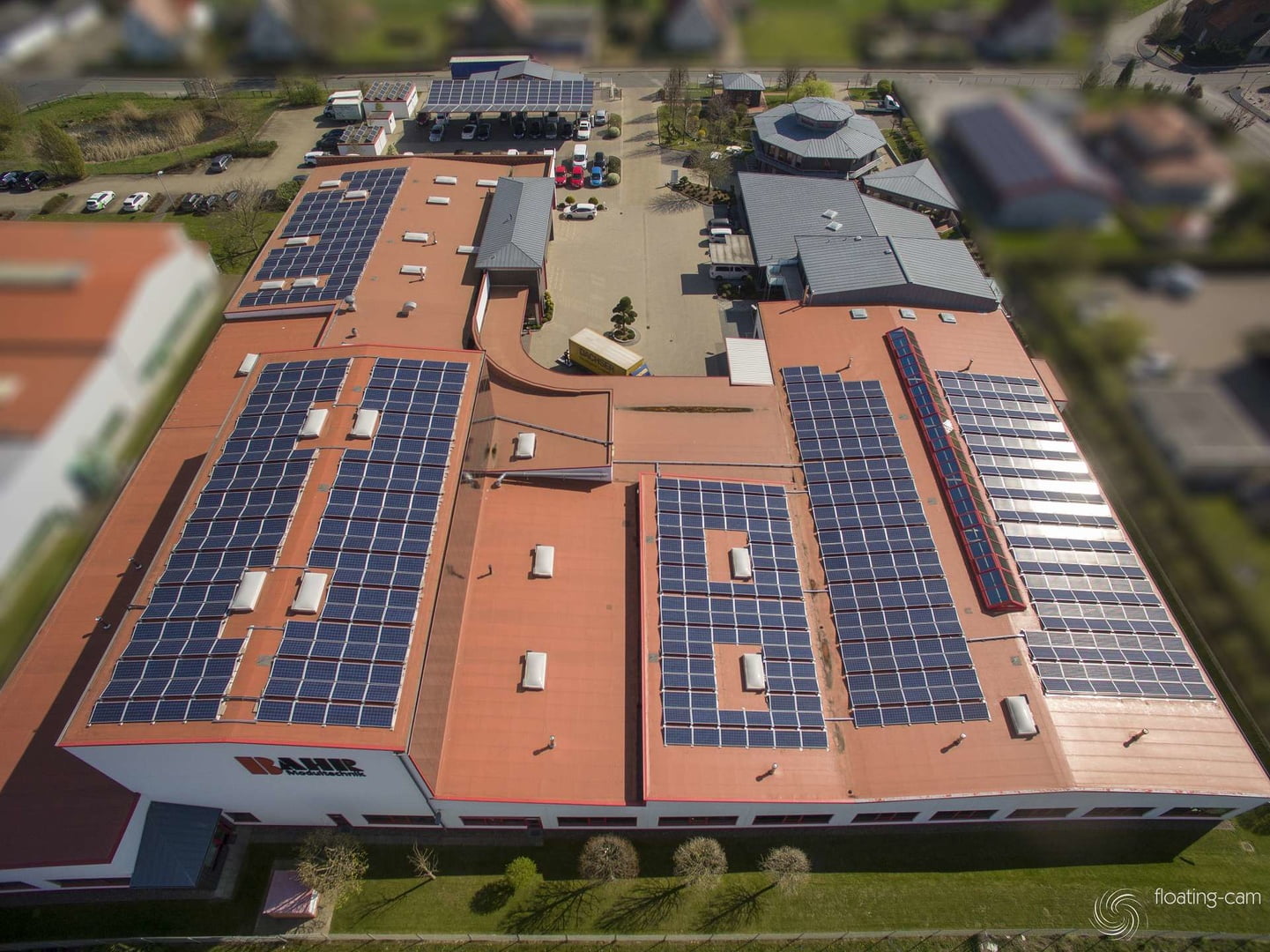 2015 wurde diese Photovoltaik-Anlage auf das Flachdach des Firmengebäudes gebaut. 714 Module des Herstellers IBC wurden montiert und sechs SunGrow Wechselrichter installiert.